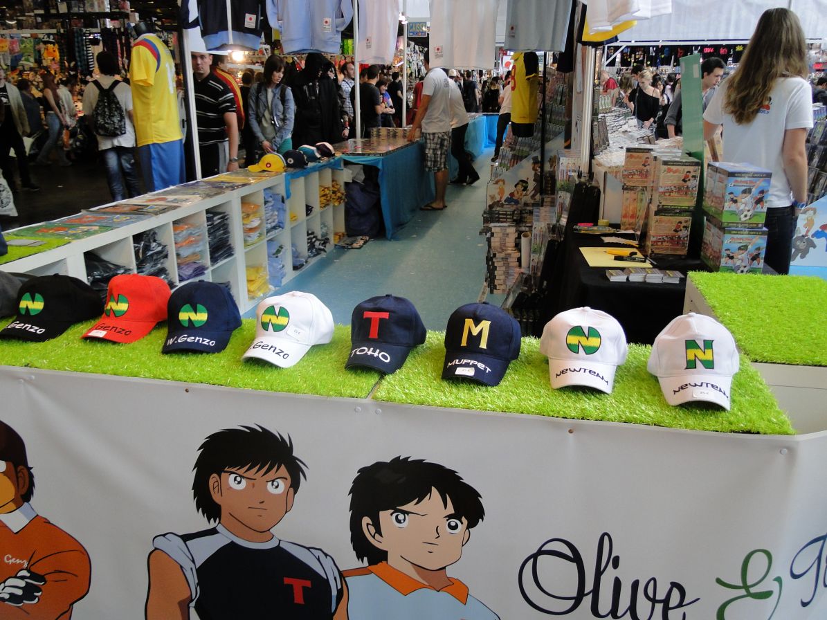 Je tiens cependant à m’attarder quelque peu sur quelques revendeurs qui ont attiré mon attention. Ainsi, Declic Collection, label de vente de grands noms de la distribution et du doublage d’animés dans l’hexagone comme Dybex, AB Production, … proposait l’un des stands les plus imposants avec des offres ultra alléchantes au niveau séries japanim en DVD, comme moins de 40 Euros pour trois coffrets complets ! De quoi parfaire sa collection d’animé sans se ruiner, en toute légalité. Au vu de l’immensité du catalogue proposé, autant dire qu’il y en avait pour tous les goûts et que le stand n’a jamais désempli durant les quatre jours du salon. Qui plus est, il était le seul à proposer les maillots, casquettes et goodies officiels made in Captain Tsubasa (Olive et Tom). Certes, notre kaméhaméraman, fan de la Newteam, a failli avoir une attaque face au prix du simple maillot de son équipe fétiche, mais ça n’a pas fait reculer nombre de fans qui ont pu déambuler sous les couleurs de Marc Landers ou Oliver Aton au sein de Japan Expo !