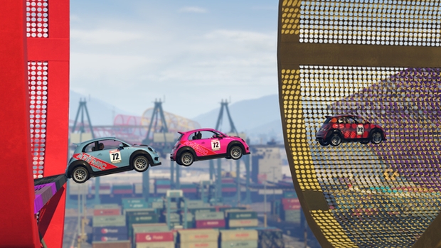 Rejoignez des courses casse-cou à grande échelle où vous pourrez surplomber l’horizon de Los Santos ou vous envoler entre les pales traîtresses du parc d’éoliennes Ron Alternates. Au travers de toutes nouvelles courses à haut risque, les véhicules foncent dans des loopings et des tubes, s’élancent sur des rampes à toute vitesse, se rejoignent et se séparent au détour de nombreuses voies, et se précipitent à l’intérieur d’anneaux de feu gigantesques.