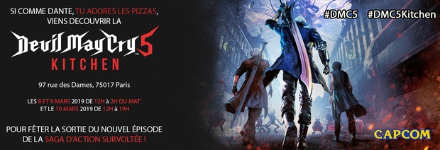 A cette occasion, Capcom France propose aux adeptes de Dante (qu’on sait gros consommateur de pizzas…) et sa bande, de découvrir la DEVIL MAY CRY 5 KITCHEN du 8 au 10 mars.