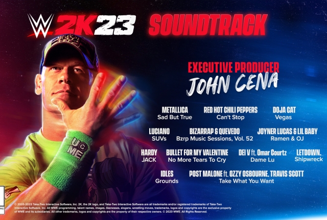 2K dévoile la bande-son complète de WWE 2K23, réalisée par John Cena, Superstar présente sur la jaquette du jeu et Producteur Exécutif de la bande originale.