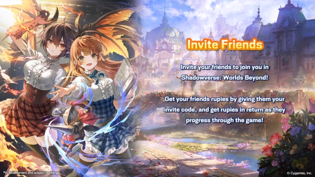 Invitez vos amis à jouer à Shadowverse: Worlds Beyond et gagnez des rupies en fonction de leur progression. Vos amis recevront également des rupies rien qu’en utilisant votre code d’invitation. Cet événement sera permanent après la sortie du jeu.