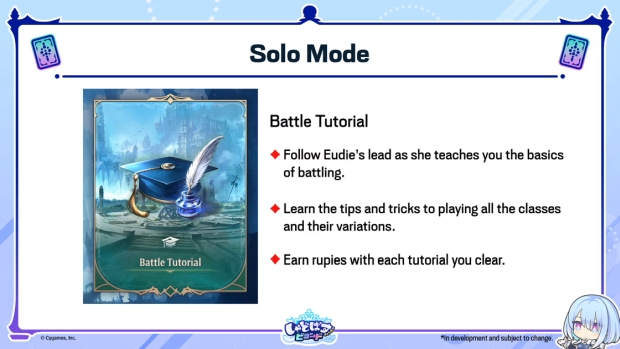 Apprenez les bases du combat et la terminologie avec Eudie, le guide intégré au jeu, dans le tout nouveau tutoriel de combat. Conçu pour permettre aux nouveaux joueurs de se familiariser rapidement avec le jeu, le tutoriel de combat propose également des leçons sur comment jouer les archétypes de base pour chaque classe présente dans le premier set de cartes.