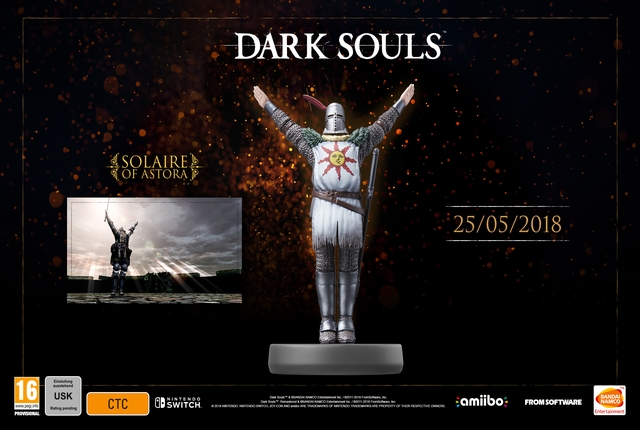 BANDAI NAMCO Entertainment Europe confirme aujourd’hui qu’une figurine amiibo du Solaire d’Astora sera disponible le même jour que la sortie de DARK SOULS : REMASTERED sur Nintendo Switch, soit le 25 mai prochain. Grâce à l’amiibo, vous pourrez utiliser la célèbre position “Loué soit le Soleil” en toute insouciance dès le début du jeu. Il sera également possible de la débloquer au cours du jeu pour ceux qui n’auraient pas envie de passer par la case achat irl.
