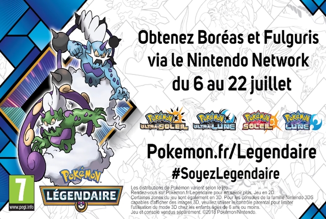 Bonne nouvelle pour les amoureux de Pokémon puisque du 6 au 22 juillet, les Dresseurs pourront mettre la main sur l’un des deux Pokémon légendaires Fulguris et Boréas, pour l’ajouter dans leur jeu Pokémon Ultra-Soleil, Pokémon Ultra-Lune, Pokémon Soleil ou Pokémon Lune.
