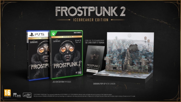 - Frostpunk 2 : Icebreaker Edition comprend le jeu complet sur disque, un diorama pop-up minutieusement conçu de Nouvelle-Londres, la nouvelle numérique glaçante « Warm Flesh » et un artbook numérique dévoilant les coulisses de la création de ce monde impitoyable.