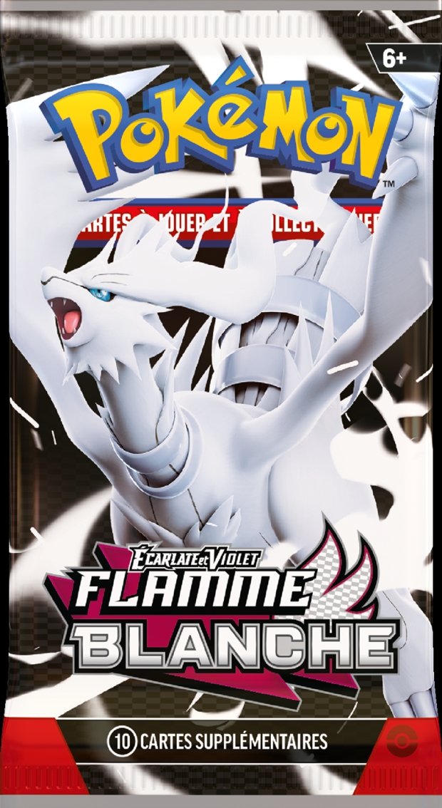 - Les lots de boosters Écarlate et Violet – Foudre Noire ou Écarlate et Violet – Flamme Blanche (disponibles le 22 août 2025) contiennent respectivement six boosters Écarlate et Violet – Foudre Noire ou Écarlate et Violet – Flamme Blanche.