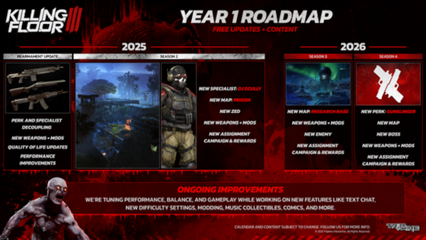 Suite à un léger report, Killing Floor 3 arrive enrichi d’améliorations issues des retours de la communauté, que l’équipe de développement a pris en compte et partagé en toute transparence sur les forums et les réseaux sociaux. Avec une base améliorée et de nombreuses mises à jour et contenus prévus après le lancement, dont la dissociation des spécialistes et des perks, Tripwire Interactive s’apprête à déployer tout son savoir-faire en matière de suivi de jeu. L’équipe de développement a partagé une feuille de route des mises à jour de contenu, à venir sur toutes les plateformes, tout en restant réactive face aux retours et préoccupations immédiates des joueurs.