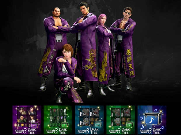 Les fans qui précommanderont Yakuza Kiwami 3 & Dark Ties (version physique ou numérique) recevront en bonus le contenu téléchargeable exclusif « Ryukyu Giga Gonz : mec légendaire Ichiban » Ce contenu ajoute le personnage populaire de la série, Ichiban Kazuga, aux Ryukyu Giga Gonz, pour le mode « Gangster légendaire : Bad Boy Dragon ».