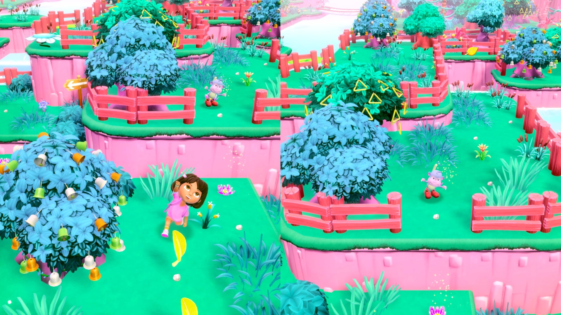 Sur Nintendo Switch 2, Dora : Sauvetage en forêt tropicale respecte la direction artistique de la série et nous livre du 60 images par seconde au travers de graphismes cartoon colorés, avec des jungles luxuriantes, et des animations expressives des personnages, sans aliasing notable. Un vrai dessin animé, manette en main.