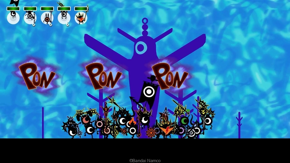 La bande-son, véritable pilier de l’expérience, reste un chef-d’œuvre : les percussions tribales et les chants des Patapons, évoluant avec les environnements et les combats, créent une immersion totale. Malgré une qualité audio légèrement datée (héritée des limitations de la PSP), les mélodies accrocheuses et les voix « kawaii » des Patapons restent inoubliables et rythment parfaitement l’aventure.