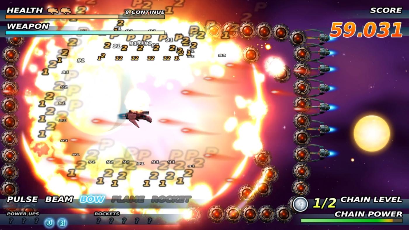 Cinq actes étirés, scindés par des cutscenes, mènent à des duels épiques contre des serpents robotiques ou des croiseurs behemoths aux assauts variés, sur cinq niveaux de difficulté (novice à cauchemardesque déblocables) avec des continues personnalisables. Entraînez-vous par stage, grimpez dans les classements online/local, traquez les clés occultes pour le monde bonus (un véritable supplice !), ou affrontez le chaos en duo partagé – énergie et chaînes communes, scores hors classements –, instaurant un replay scoristique addictif malgré la brièveté globale de l’aventure.
