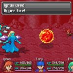 Les affrontements au tour par tour, vus en profil comme dans les Final Fantasy originels, exigent une stratégie affûtée : exploitation impitoyable des faiblesses élémentaires, sélection de quatre sorts équipables, compétences innées (saut, coup de pied, couverture) et invocations de Frida tirées des bestiaires vaincus (66 au total !). Pas de tutoriel ni de main tendue – à la SaGa – obligeant à expérimenter pour survivre aux boss impitoyables. Options de personnalisation (vitesse combat, taux d’aleas, animations) et auto-bataille facilitent les grinds, tandis qu’une défaite renvoie à l’auberge sans perte d’XP, mais avec malus persistants (poison, MP). Brutal et addictif, ce système fidélise les puristes.