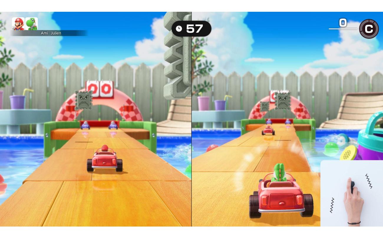 Si le mode souris est une réussite, notamment dans des mini-jeux comme « Carapace sur table » ou « Avalanche de dominos », les ajouts liés à la caméra et au micro déçoivent. Le Bowser Show, qui met en avant la caméra USB-C (vendue séparément), propose des mini-jeux basés sur les mouvements ou la voix, comme crier « Bowser » plus fort que ses adversaires. Ces concepts, bien que rigolos sur le papier, manquent de profondeur et deviennent vite répétitifs, surtout dans un espace restreint où la détection peut être chaotique. De plus, l’interface confuse, qui sépare le jeu de base et Jamboree TV sans explication claire, peut dérouter. La fonctionnalité GameShare, permettant à quatre joueurs de partager un seul exemplaire en local, est un atout, mais elle exclut le mode Jamboree TV, limitant son attrait. Globalement, le gameplay reste fun et convivial, mais les nouveautés ne révolutionnent pas l’expérience.